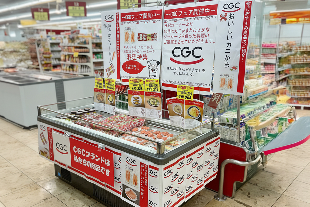 お客様との接点は、なんといっても商品にあります。CGCの各種ブランドがついた商品、CGCが国内外で開発した野菜や果物、お魚やお肉など毎日の生活に欠かせない約1,900品目を超える商品がCGCグループに加盟しているお店の売場に並んでいます。