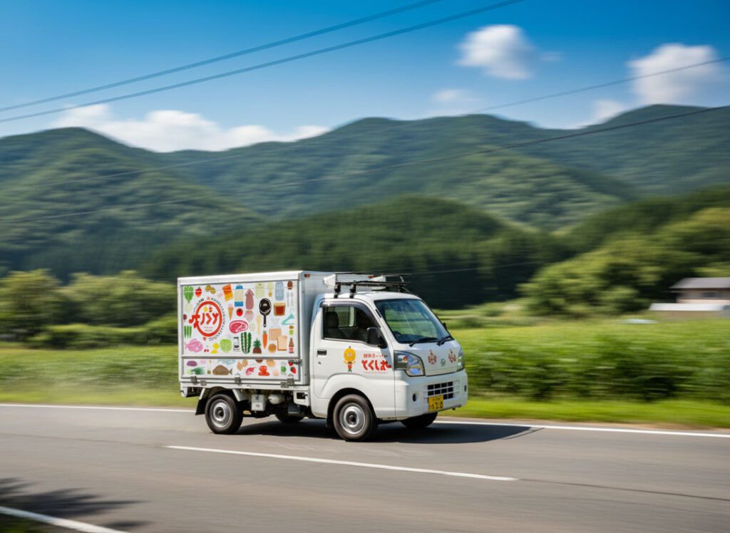 約300〜400品目、約1000点を軽トラックに積んだ、コンビニより便利な移動スーパーです。