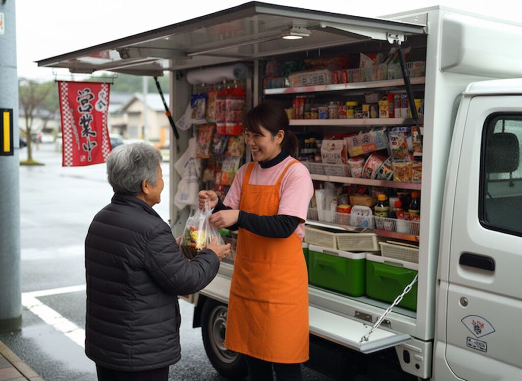 販売パートナーと呼ばれる商品を運ぶ・運転する人は、商品を販売するだけでなく、地域の見守り隊として社会貢献しています。