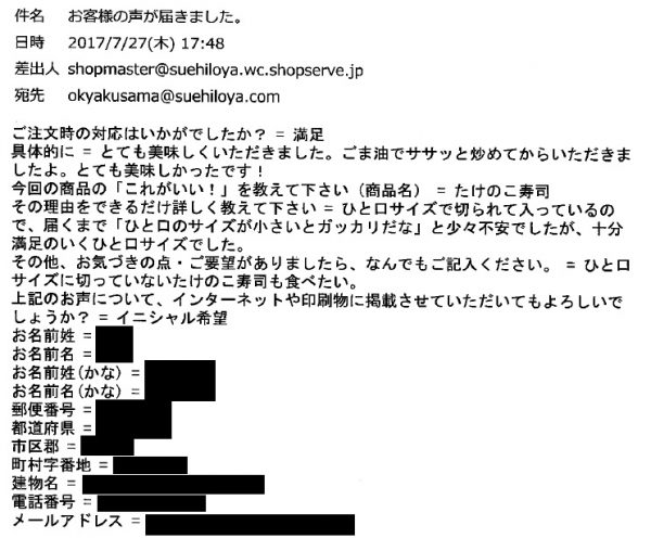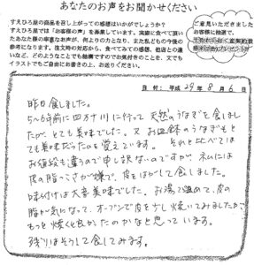 その他、お気づきの点・ご要望がありましたら、なんでもご記入ください。=ひと口サイズに切っていないたけのこ寿司も食べたい。