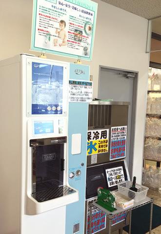 当店では4Lのエコア専用ボトルを550円(税抜き)にて販売しております。この専用ボトルをお買い求めいただき、お水を入れることができます。末広友の会会員様におきまして、一日一回無料で給水することができます。一日二回以上のご利用、または会員様以外のご利用は100円(税込み)にてご利用いただけます。