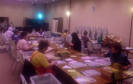 折り込んだり、袋に入れたりという作業を社員総出で行っています。