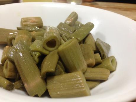 私の個人的な食べ方は、取りたてのイタドリの皮をはぎ、水に浸す。