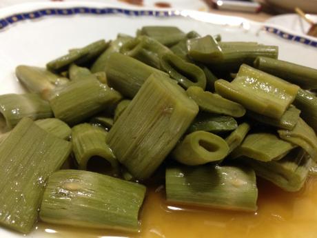 地元のジャズ居酒屋「一休」のイタドリ炒め物。