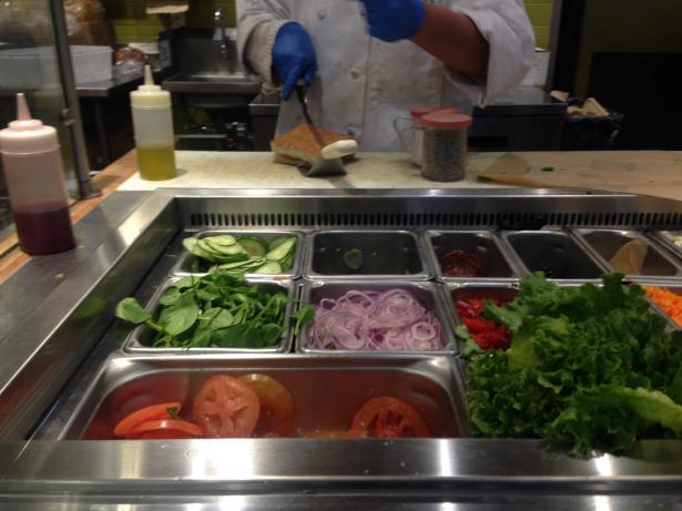 せっかくなので、ランチは自分でパンの生地やらチーズやらお肉やらを選ぶ、