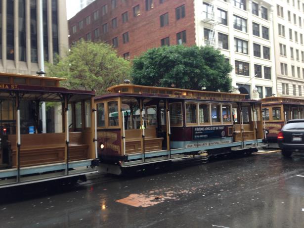 サンフランシスコで乗った、トロッコ電車も雨に打たれながら乗りました・・・
