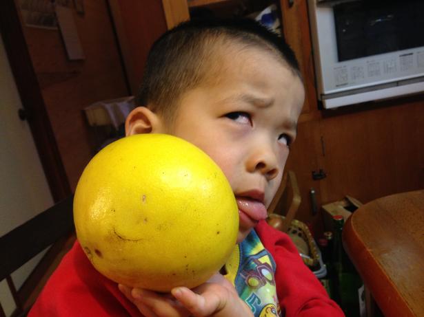同じ文旦ですが、更には息子の顔と比較(笑)