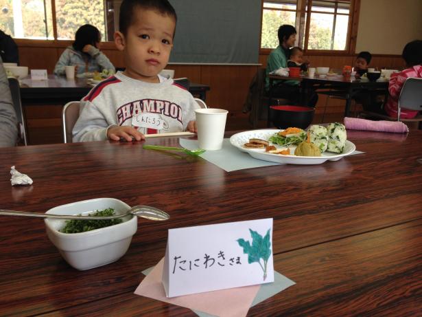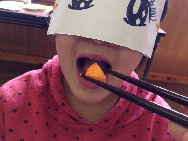 いくつか収穫してあとは、がっこうの教室に戻って、目隠し食べ当てクイズ。