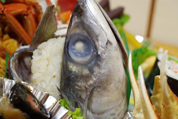 中央には必ずメインとなる伊勢海老や姿寿司が鎮座します。