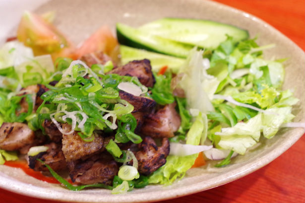 親鳥はなんといってもコリコリした固い食感が魅力的です。塩タタキなんて、ほんとよく考えられたメニューです。この画像ではわかりませんが、サラダの下には、塩水のようなドレッシングのような液体に浸っておりました。これが塩タタキの塩なんでしょうか?