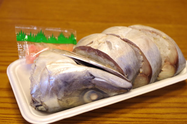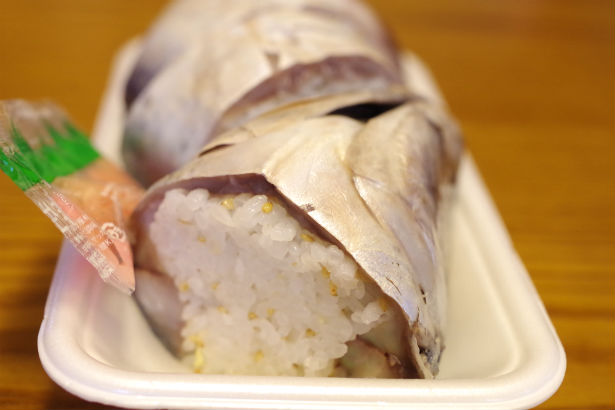 さすがに一人では一尾分の清水サバ姿寿司は食べれませんので、ハーフサイズを選びました。ハーフなので、頭が付いてるものと、しっぽがついてあるものになりますが、今回は頭があるほうに。これは好みが分かれると思いますが、サバの身をしっかり食べたい人は、しっぽの方になるかもしれません。頭のカマが食べたい人は、こちらがいいですね。