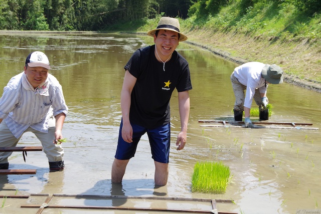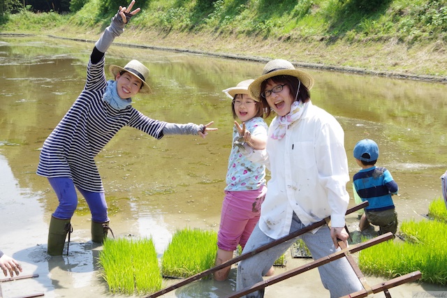 参加者も物凄くいい笑顔で田植えを楽しんでいます。
