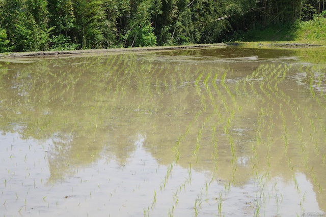 しかも人間の直線感覚とはアテにならないもんで、あの木枠の定規のような機材をつかっても、こんなにバラバラに植えてしまっています(汗)田植えの機械が普及するまで、昔の人はこれを手で植えていたのは本当に驚きです。すえひろおんちゃん曰く。せっかくなので手直しせず、この状態のまま置いておくそうです。自分がどこを植えたかわかるようにと。