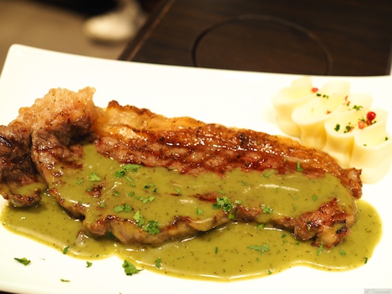 メインとなった黒毛和牛のステーキを頼みました、ちっと変わったソースが美味しかったです。