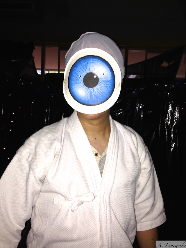 目玉親父ではありませんので、お間違えのないように(笑)Facebookでアップすると「リアル過ぎて怖い!」という感想を多く頂きました。私は驚かす役なのですが、この衣装を準備してくれた、他の保護者の方のおかげです。