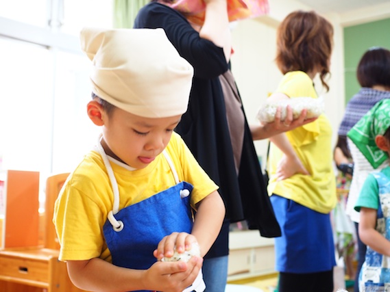 いいところを見せようと、ここぞとばかり一生懸命におにぎりを作ります。普段もやってくれたらいいんですけど(笑)