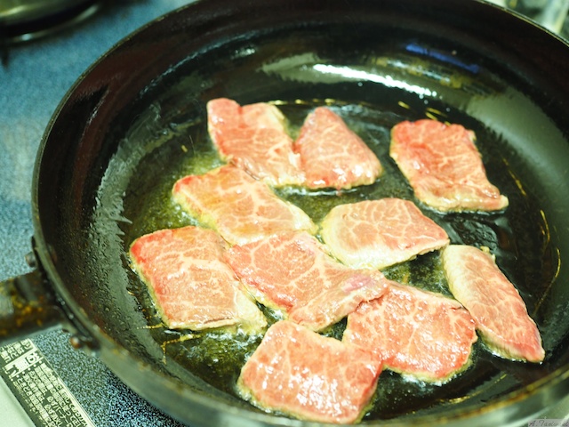 すき焼きにしても美味しいようですが、今回はシンプルにフライパンで焼きました。