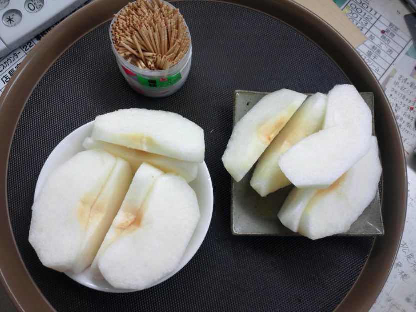 針木産新高梨と黒岩産新高梨を食べ比べしました。