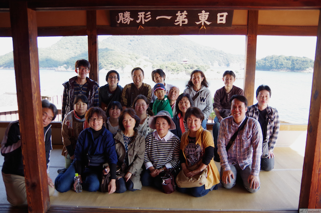 最後に、有名な観光地である仙酔島が一望できる場所でも記念撮影。