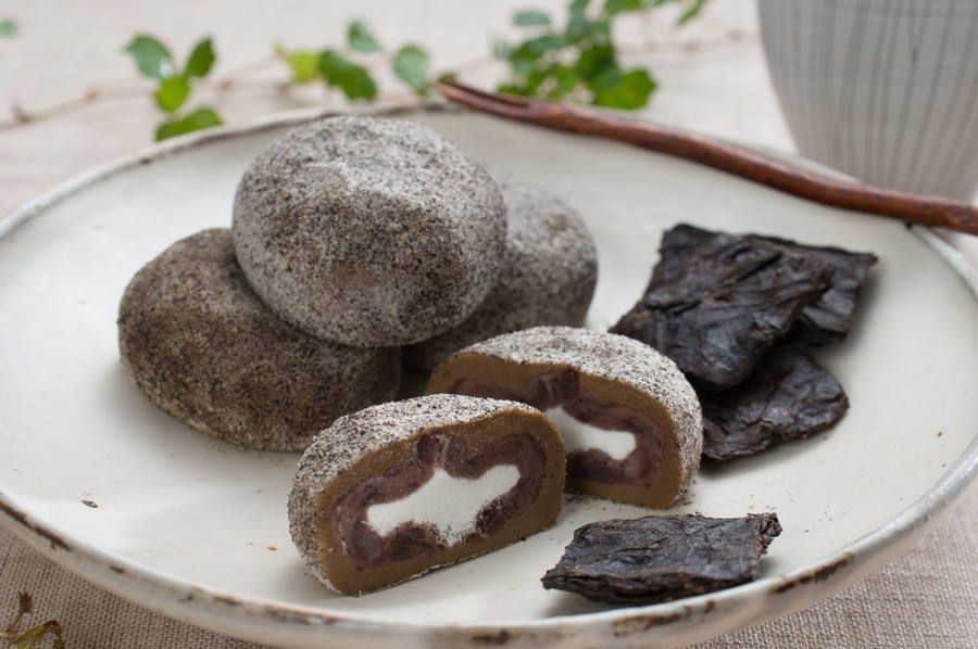 高知県大豊町に伝わる幻のお茶と呼ばれる「碁石茶」をまぶし、生クリーム・あんこ・生地・まぶし粉の四層からなる和洋折衷のスイーツです。以前より販売しているすえひろ屋のオリジナル商品「碁石茶大福」は、碁石茶を生地に練り込んで、三層のスイーツですが、ここだけ大福は碁石茶を表面のまぶし粉に使用しています。