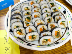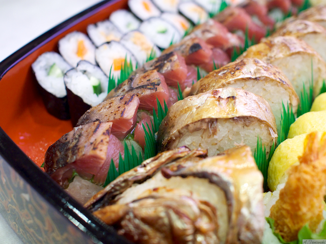 もう一つは左に見える、鰹のタタキの姿寿司です。鰹のタタキを一本というか、半身を丸々姿寿司にしてもらいました。鰹のタタキは握り寿司や巻き寿司になっているのはよく見ますが、どこで見たかわかりませんが、ある雑誌で見たのを作ってもらいました。味もなかなか美味しく、新しいメニューの一つに加わればと思います。