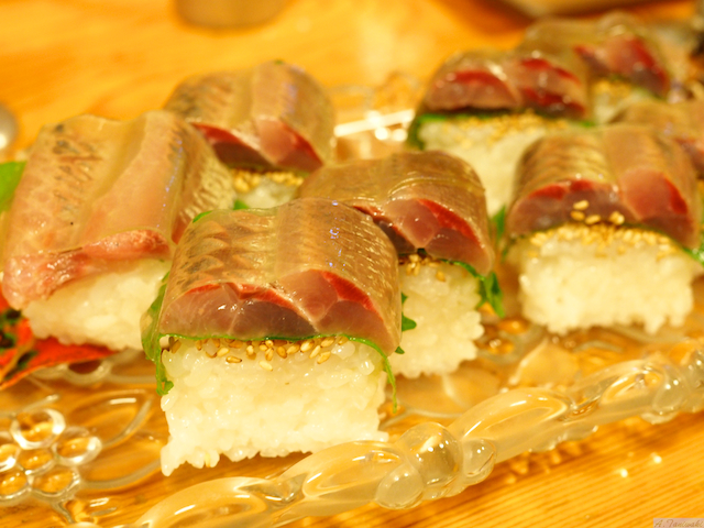 第二位はこれまたお寿司になりました。かもん亭で食べた一本釣りのうるめのバッテラ寿司が、ネタの身も厚くて、寿司飯のお酢の加減もよく、ごまとの相性も抜群でした。