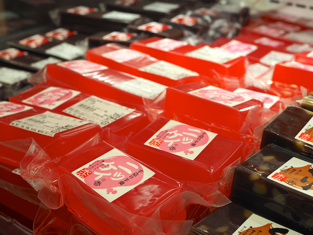 この二つのようかんが当社の売れ筋No.1、No.2になります。その他にもあずきの羊羹をベースに栗やゆずが入った羊羹も人気です。ようかんを食べるのは高知の昔ながらの文化なのかと勝手に思っていましたが、ネットで検索をかけてもそのような内容はほとんど出て来ません。どうやら昔ながら作り方で手作りしている、当社の羊羹が支持して頂いているんだなということが、改めてわかりました。