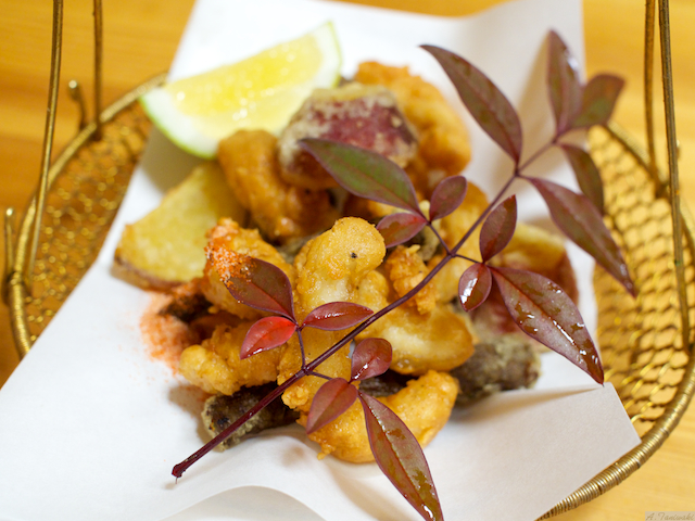 室戸産のマンチョウの唐揚げ。マンチョウとはマンボーの腸のことだそうです。唐揚げにしてもシコシコした食感が特徴的な美味しい唐揚げでした。