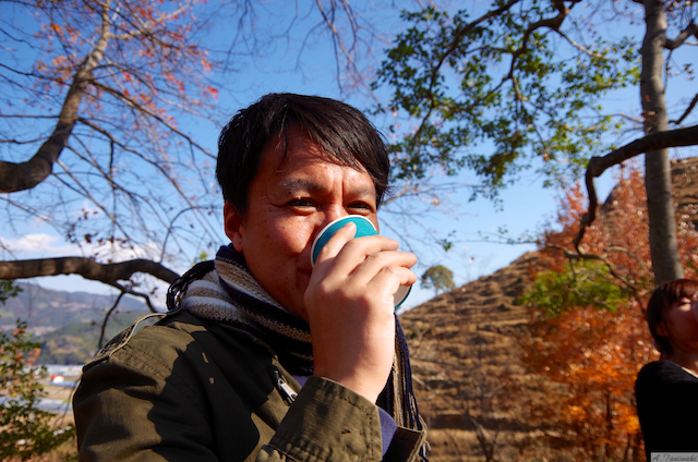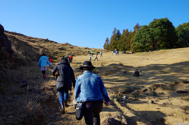 冬の時期はやはり寒くて、牧草もないので、牧場の下に下りてきております。せっかくなので、牧場の頂上まで登ることになりました。