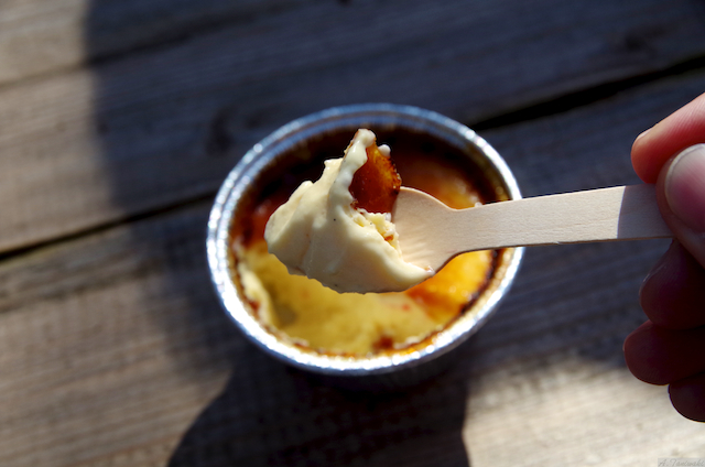 株式会社スウィーツさんで一番売れている商品、アイスブリュレも食べることができました。「ニッポン全国ご当地おやつランキング」でグランプリに輝いた商品です。ジャージー乳の濃厚な味が、アイスになって食べやすい。しかも表面をこんがり焦がしたキャラルのパリッとした食感がなんともいえません。