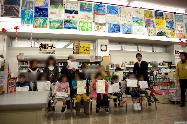 2月8日(日)のことです。末広ショッピングセンター本店の店内に全国児童画コンクールの表彰式を執り行いました。