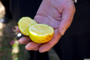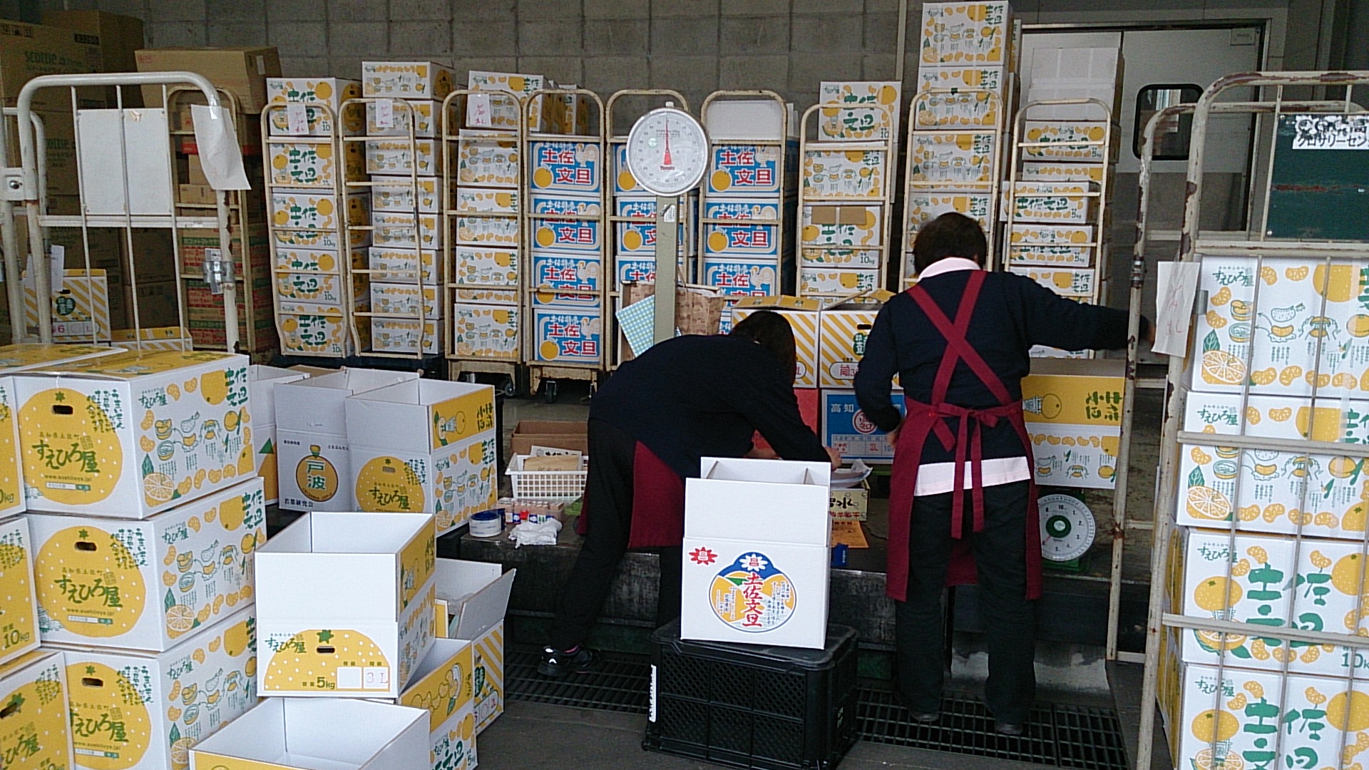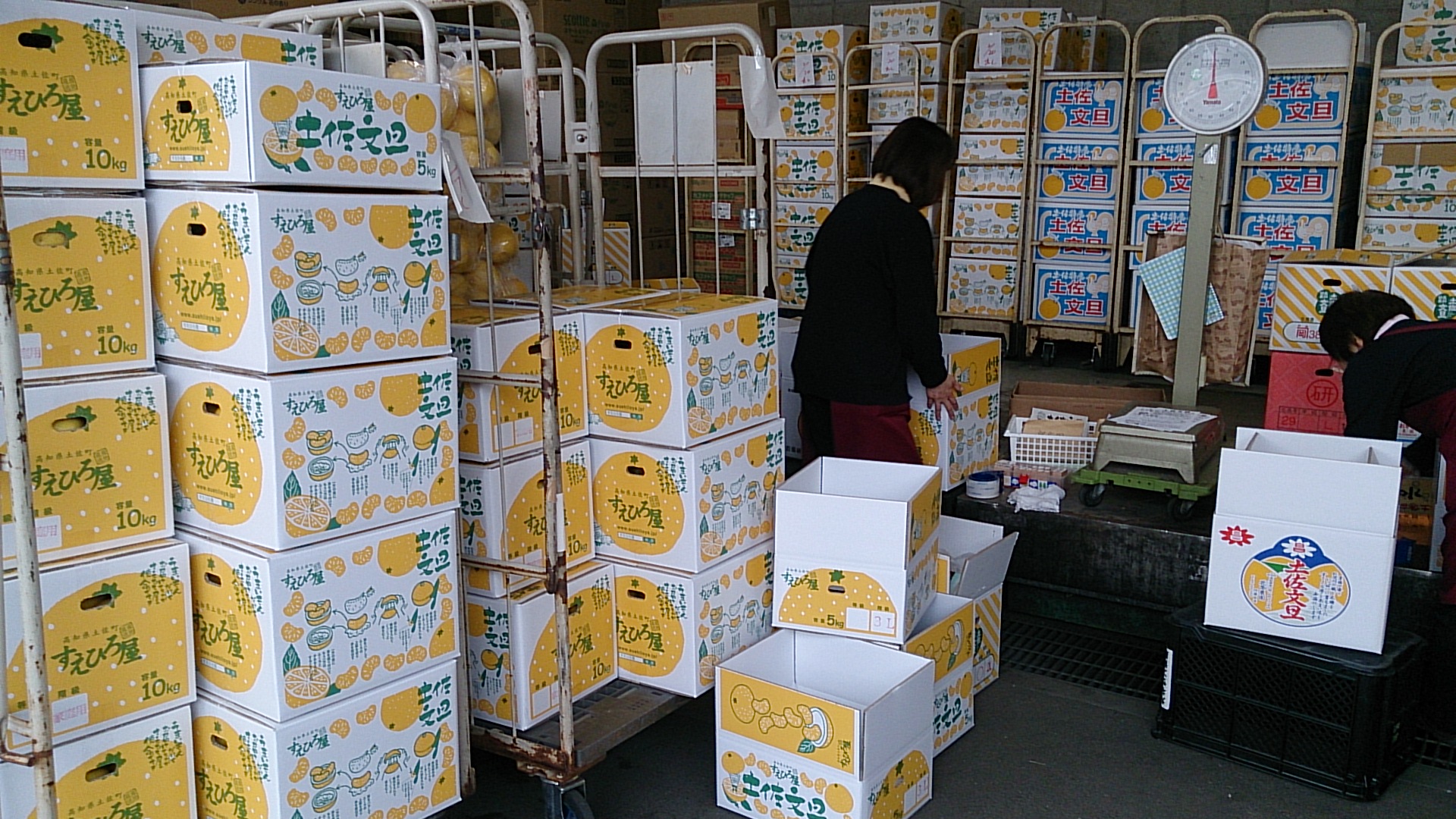 食べ方・食べごろ新聞を入れながら1個1個文旦を見ながら