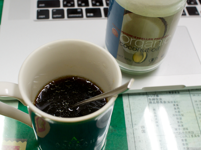 次にやってみたのが、ブラックコーヒーに入れてみました。あとでココナッツオイルの効能は色々あるようですが、毎日摂取した方にとったらオススメの方法だそうです。ココナッツの香りとコーヒーの香りがいい感じに混ざって美味しかったです。が、やはり脂っこくなります。よく考えたら油なのでそうですね(汗)他にはお菓子やケーキなどのスイーツを作る際に使用したり、単純に炒め物などの料理に使う方法があるとか・・・私もまだまだ勉強不足なので、もう少し調べないといけませんね。