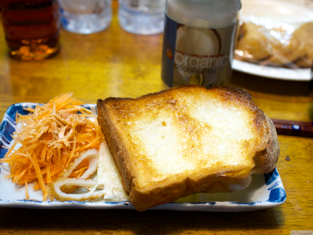 話を戻して、どのようにココナッツオイルを使ったらいいかわからないので、加工食品バイヤーに聞いてみました。まずはバター代わりにパンに塗って食べてみるのがオススメだとか。ココナッツオイルを食パンに塗って焼いてみました。が、ココナッツのいい香りがするものの、味がありません。よく考えたら油なのでそうですね(汗)オリーブオイルのように、はっきりとした味があるわけではありません。