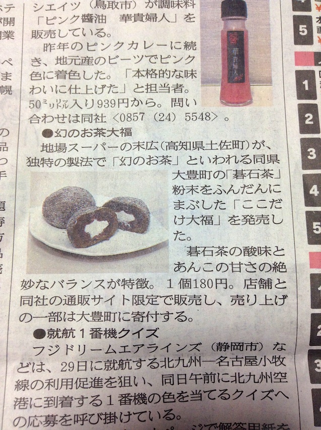 四国新聞・神戸新聞にも掲載!?大豊町碁石茶「ここだけ大福」がまた紹介されました。
