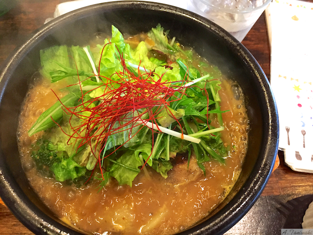 静止画ではこの熱々がわかりにくいと思って、思わず動画で撮影しました。このグツグツと沸騰している様子がおわかりいただけるかと思います。見ての通り超激アツですので、食べるのにも冷ましながらになるので、少々時間がかかります。このあと予定があったので、慌てて食べてしまいましたが、時間がゆっくりあるときに食べることをオススメします(汗)