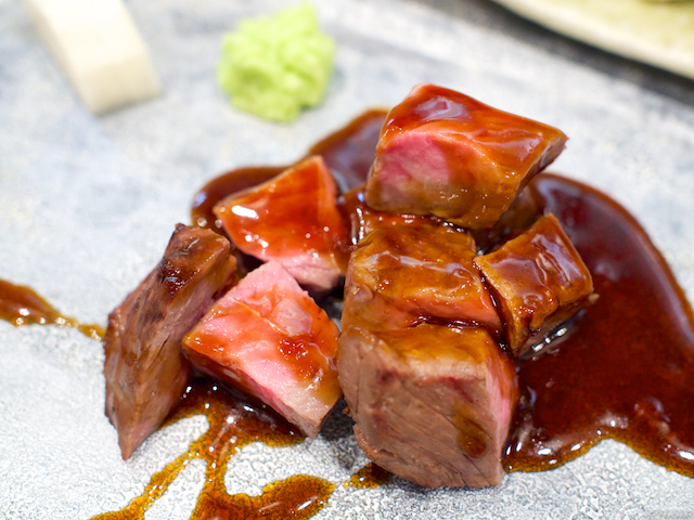 低温調理和牛ステーキは、脂っこくなく、赤ワインとの相性が抜群。