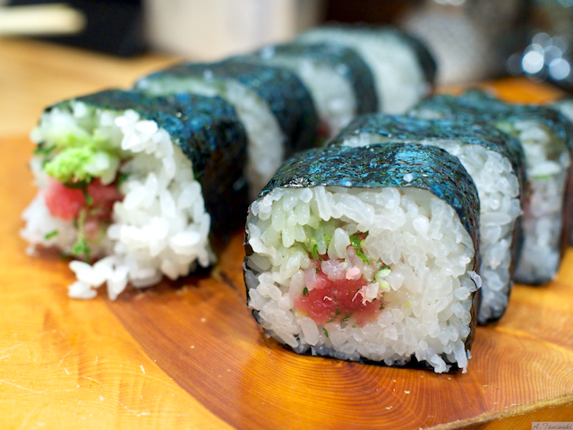 最後の締めに、ネギトロ巻きを頂きました。ネギトロは市販されているものではなくて、マグロの切り身からその場で作った美味しいものでした。