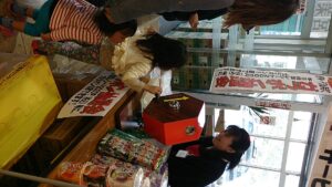 手伝いといってもそう大したことができるわけではありませんので、いなり寿司の油揚げに寿司飯をつめたり、同じくこんにゃくに寿司飯を詰めたりという単純作業が中心となります。当店のこんにゃく寿司を初めて見た方は、びっくりされる方が多いように感じます。こんにゃくを寿司ネタのように切ってシャリの上に乗せるものではなく、いなり寿司のような三角形のこんにゃくに寿司飯が入ったものはあまりないようです。我々に取ったらこれが当たり前のこんにゃく寿司ですが、特に都会から来られる方にとったら当たり前じゃないようなのです。