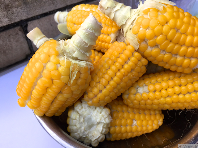 スイートコーンのような甘みはありませんが、モッチモチの食感がこのトウモロコシの魅力です。かすかに感じる甘みが美味しく感じます。気がつくとトウモロコシ一本では足らず、つい2本目を食べてしまうぐらい。一粒ずつ取って食べるので、お酒のおつまみにもなります。