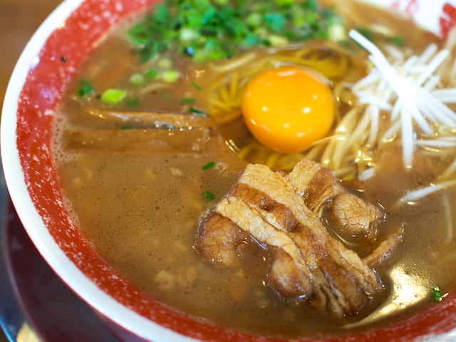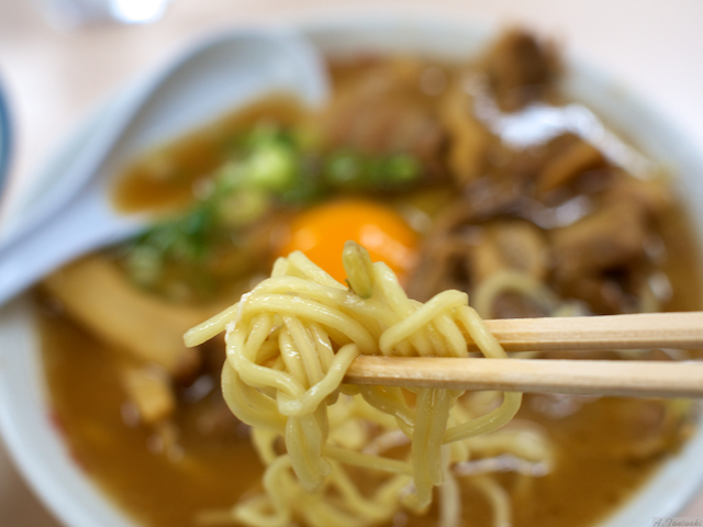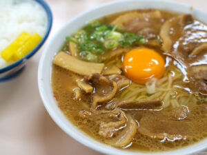 見た目は物凄くこってりに見えるのですが、食べてみるとそうではありません。あっさりとは言えませんが、比較的サラリと食べることができます。生卵が入っているのも影響しているのでしょうか。そうはいっても肉がしっかりと入っていますので、総合するとこってり系のラーメンになりますね。徳島ラーメンの老舗だけあって、美味しいのは間違いありません。