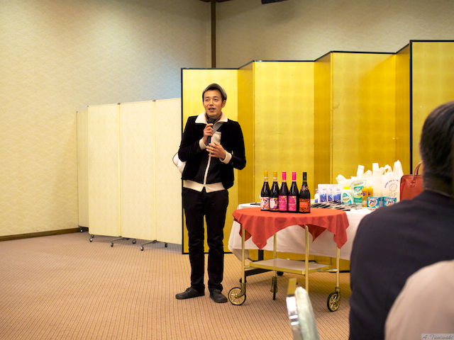 高知県嶺北の間伐材製品製作をしているばうむ合同会社にお勤めであるHさんをお招きし、飲む前に今年のボジョレーヌーヴォーの特徴について、説明して頂きました。実はHさんはソムリエの資格をお持ちで、ワインについて深い知識をお持ちです。