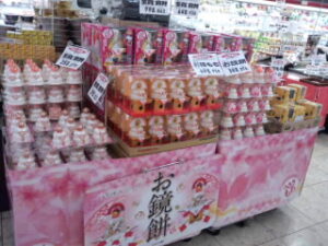 かわいいキャラクターの鏡餅もありますので