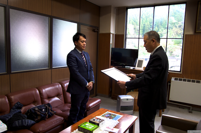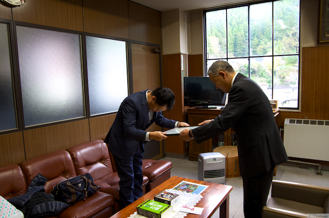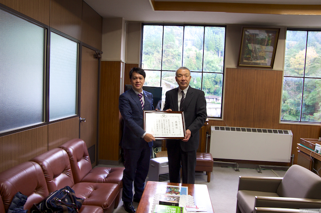 2015年11月27日(金)大豊町役場におきまして、株式会社末広は大豊町に小額ではありますが寄付を致しました。昨年11月20日に発売した大豊町碁石茶「ここだけ大福」が発売から1年間を経過しました。サンキューキャンペーンとして、ここだけ大福の売上金額の3.9%を大豊町に寄付すると、当初から寄付付き商品として販売しておりました。