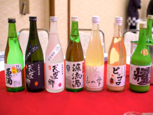 が今回揃いました。しかし、こう振り返ってみると、どれもアルコール度数のきついものばっかりですね。だいたい通常の宴会ですと、まずはビールを飲んでからになりますが、この会はいきなり日本酒からのスタートとなり、しかもアルコール度数が高いので、あっという間に酔っ払いました。このままではやばいと思って、途中からは水を飲みながらの飲み比べとなりました(汗)なかでも白いお酒のどぶろくは、特にアルコール度数が高く感じます。