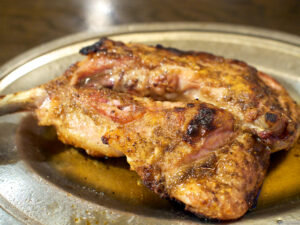 上の画像にあるのは、ひなどりです。おやどり派とひなどり派によく分かれますが、やっぱり私は柔らかくて食べ易い、ひなどりを注文してしまいます。歯ごたえがあって、味のあるおやどりにも魅力は感じますが、どちらか選べと言われれば、ひなどりでしょう。あなたの好きな骨付鳥はどっちですか?