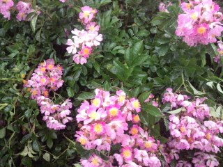 きれいなピンク野バラが咲いています。