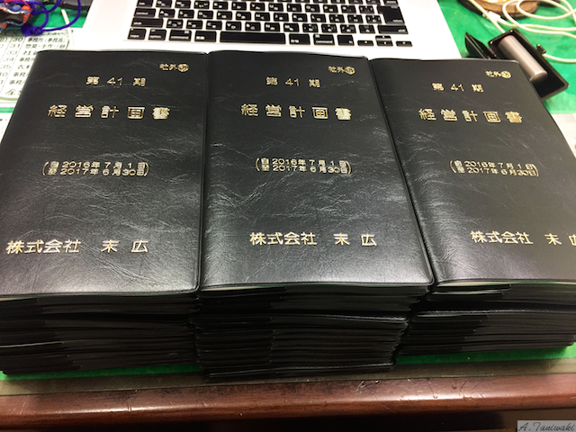 一番上の画像にあるように、第41期の経営計画書が刷り上がってきました。7月12日に弊社の経営計画発表会を行いますので、その時に社員さにはお配りするようになります。
