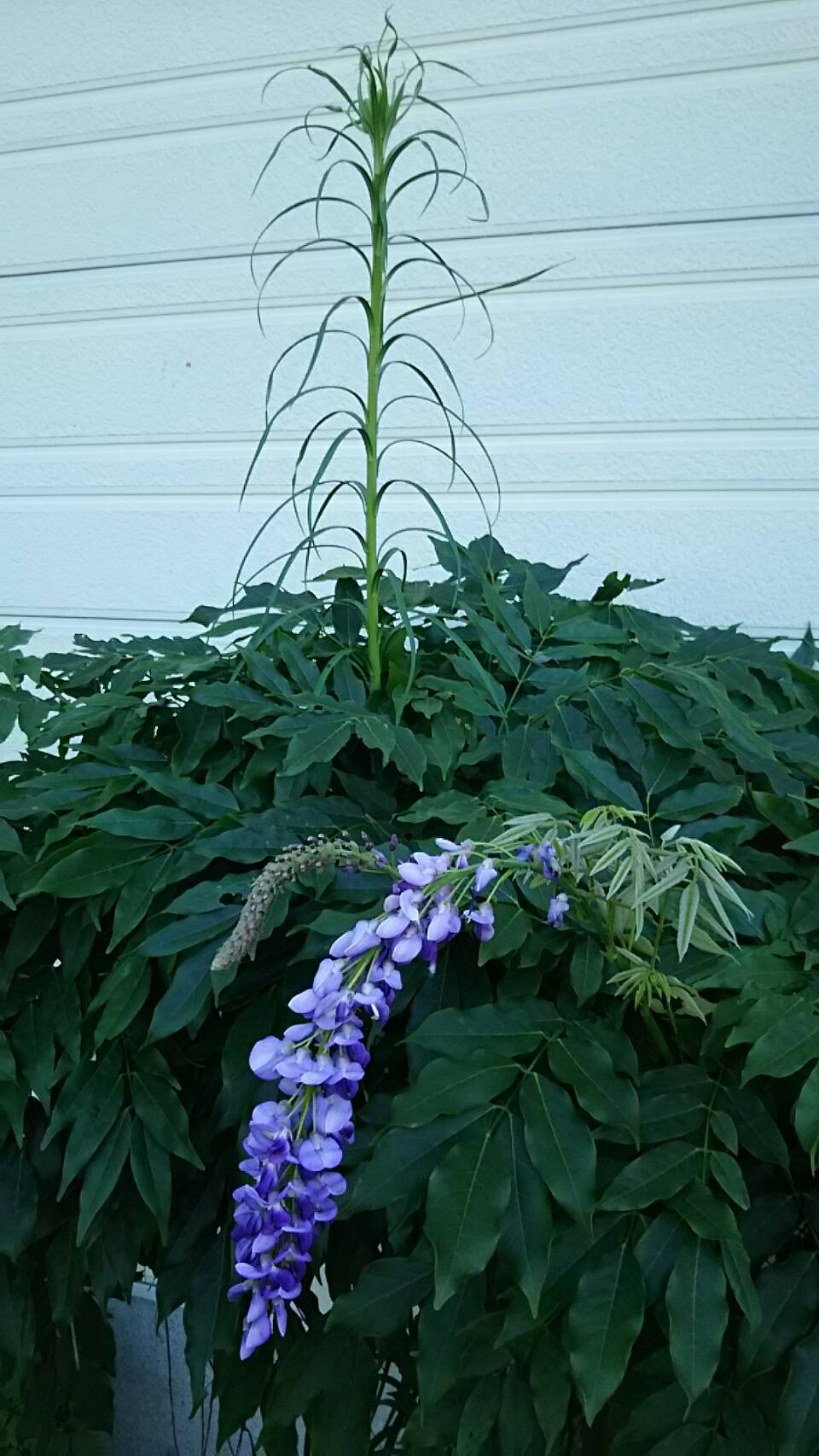 春に咲く藤の花ともうすぐ咲くであろう夏の百合の花を