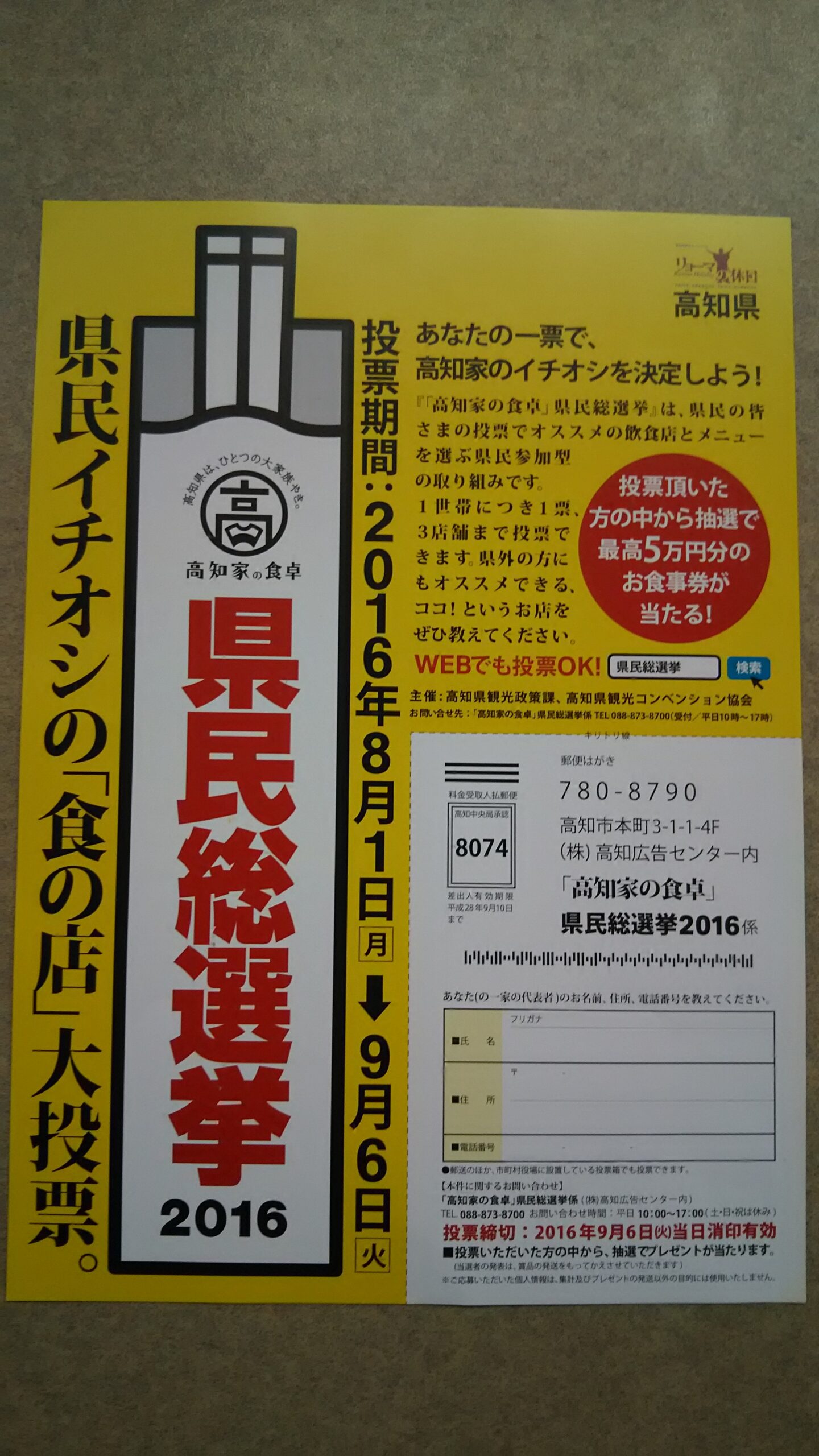 選挙結果は『高知家イチオシグルメガイド2016』に